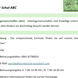Neue E- Adresse der Betreuung: ganztag(at)grundschule-launsbach.